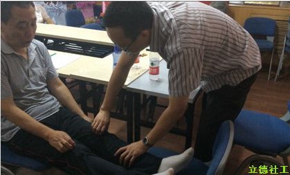 最后,蒋大夫就每个人的状况,教授每位居民一套专门针对自己膝部问题的保健动作,并且当场演示,当场体验,每个居民都说做这些保健动作后,很舒服。大夫教的很仔细,每位居民学的很认真。一位70多岁的张阿姨怕自己记不住,一定要让我们的社工为她演示一下,她用相机拍下来,回家按照照片跟着做。“我拍下来,这样我就不会忘了,我呀一定得坚持练,要不我膝盖疼,我啥都做不了。”“你还别说,按照蒋大夫教的这一锻炼还真是舒服多了。”