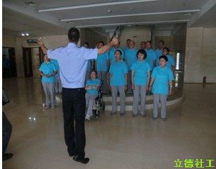 赛前,我们机场温馨家园的成员们在认真的排练着,准备着,与其他团队不同的风景是,一位“警察哥哥”正在给他们认真地打着节拍。这道独特的风景线,吸引了不少其他团队的成员,大家纷纷过来凑热闹,目不转盯的欣赏着这位身穿军装的警察哥哥的表演。