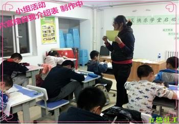 40分钟后,开始第一次小组活动,制作六宫格自我介绍表,前后左右的交换填写,旨在让每位小朋友都能对周边的人有一个深刻的印象。大家边写边问“你是龙泉小学的啊”“你几年级的”“你家住几号楼”,看来效果不错啊。小家伙们都很会打交道嘛。