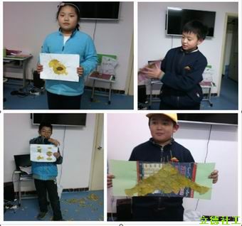 就在路上,我们看见一片金黄色的银杏叶铺了一地,好美,学生们也特别喜欢,就这样一个灵感闪现“亲们,咱们拣点树叶,去完成一幅作品吧!”得到了积极的相应,每人捡了心仪的树叶,最后还捧回了一大捧的树叶,供大家选择。怎样与环保主题结合呢?对了,很多稿纸不用就浪费了,“我们今天就用这些稿纸来做叶子画,好不好?这样也是环保,你们说是不是?”“是,老师赶紧给我一张,”“给我一张。”叶子画制作,正式开始。