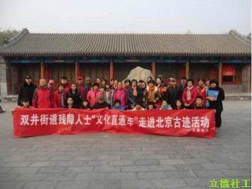 2014年11月26日,由亚运村立德社工事务和双井街道残联所联合举办了一场带领盲人观看心目电影和参观恭王府的“文化直通车”外出活动。街道残联科长、社区工作工作人员、地区残障人士及家属、以及立德社工、志愿者近50人参加活动。活动还得到世界劳工组织的关注和支持,为残障朋友录制活动视频。