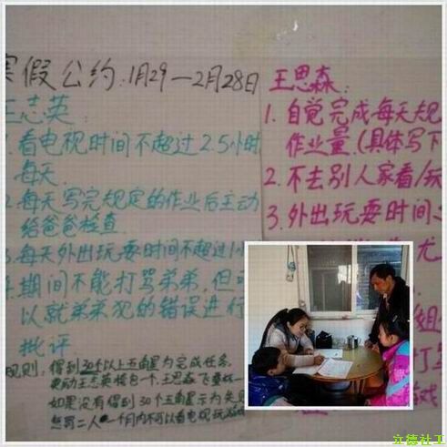 寒假到来的第一天,社工邀请爸爸、姐姐、弟弟三方坐在一起,大家轮流说说彼此的缺点和不合适的言行举止。在达成一致后订立规范加以约束,每天爸爸会以奖励五角星的形式对孩子当天的表现加以评判,一个月的时间如果达成30个星星就算任务完成,如果失败就要接受相应的惩罚。寒假公约建立后,两位小主人公很有信心完成目标,爸爸也很期待孩子的改变,让我们拭目以待。