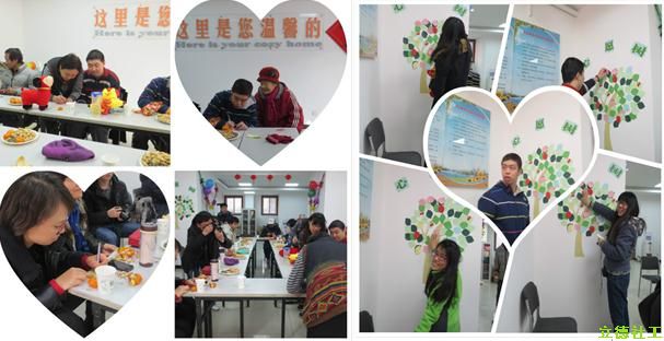 在歌声中,我们结束了今天的活动,但是我们的快乐并没有结束,我们的美丽心情将会持续的延续下去。这次活动,从策划到准备一切的一切都是立德社工与温馨家园的老师、残障朋友们共同完成的。从每位参与者到场抽取的号码牌,到我们的心愿树,这一切的一切都有我们残障朋友的努力和付出,真心体会到劳动后的欣慰及幸福,所以我们全体祝愿所有贴在心愿树上的心愿都能成真,愿所有的祝福能够送达到在场的每个人心中。今天我们大家共同喜迎羊年佳节,共同分享美丽心情,真心祝愿天下所有的人每天都有美丽的心情,每天都是“喜洋洋”。