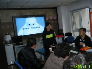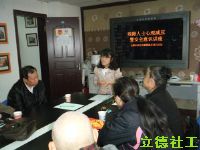 2015年3月27日上午,在安慧东里社区积极支持配合下,立德社工邀请了南开大学心理学硕士老师,为辖区残障人士及其家属开展了一场别开生面的“心理讲座”。与以往的培训形式不同,这次的培训不是老师站在台前教授一些理论上的知识,而是由服务对象们作为社区的主人,营造安全舒适的氛围和环境,让大家在互动交流中分享感受、表达自我,将心理学元素融合其中,通过心与心的沟通交流,缩短彼此间的距离、增进感情、建立朋辈支持,达到良好的心理辅导作用。