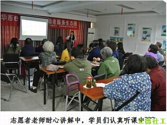 我们这第一期微信学习活动主要讲解的是微信最基本的使用方法。民族大学的主讲志愿者从微信的介绍、注册、添加好友、语音聊天等方面有浅入深,有简入难,依据理论结合操作图片进行详细的讲解。在配合其他志愿者的耐心辅导,使我们这次课堂有序进行,老年人仔细的听,认真的做笔记,谦虚的问老师,整个过程中弥漫浓浓的学习氛围。