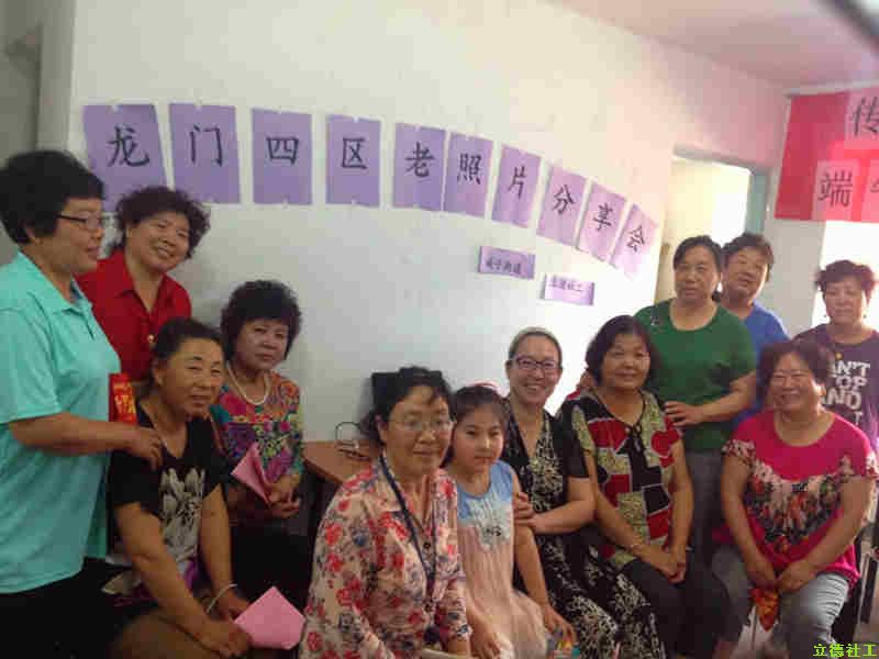 2015年6月12日立德社工在龙门四区内与暖心助老小队成员与活动定点班级成员及社区老年人居民共同开展了一次老照片分享会,回忆我们那些年的照片背后的快乐故事.