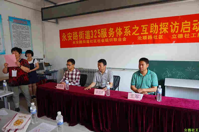 6月19日上午九点半在沧顺路社区居委会活动室座无虚席,气氛热烈原来这边正举行由永安路街道社区社会组织联合会,沧顺路社区,立德社工服务中心三方联合举行的社工助老互助探访的启动仪式。
