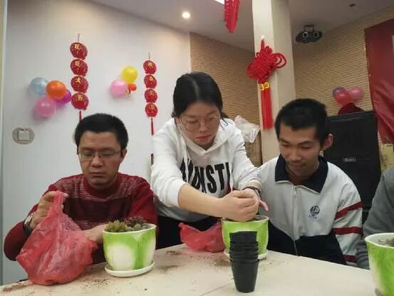 经过短暂的休息后,实践课开始了。夏老师拿出了准备好的花盆、多肉土、多肉植物等,让大家体验制作迷你盆栽的乐趣。在绿植老师的指引下,大家先把多肉土倒在花盆里,随后把多肉植物放进去,最后在盖上一层多肉土,最后把小多肉插在土里,一盆盆精致迷你的盆景出现在了众人眼前。