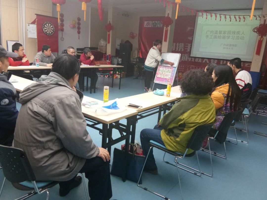 为了丰富广内地区残疾人的文化生活,提高地区残疾人的动手能力。2018年3月13日上午,广内街道残联组织地区残疾人在广内温馨家园进行绘画活动。