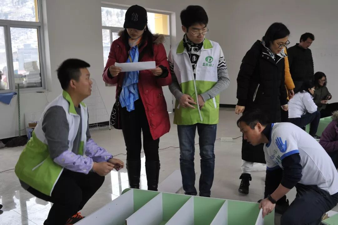 当天早上9点,英特尔北京志愿者、立德社工携书从北京出发,赶赴涞水县赵各庄镇玉斗小学图书室。抵达目的地后,雨雪停歇,太行点染银妆。志愿者、社工和玉斗师生立即投入到书柜组装、图书室布置工作之中。书柜安装完毕后,900册图书顺利分类上架。图书室一面墙顷刻被图书“霸占”。这是玉斗小学图书室落成后接收到来自企业数量最大的一批精神食粮。学校孩子们如获至宝,求知欲一下子被新图书点燃。