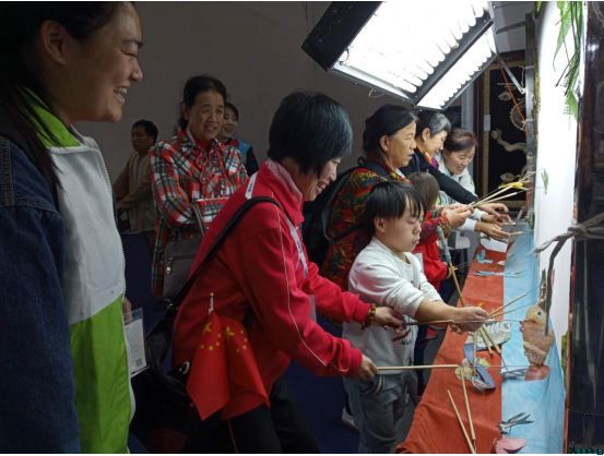 除此之外还有“残疾人文化艺术精品展”,包括刺绣、鱼皮画、书画现场制作等,近距离的接触,让残疾人朋友感觉他们也能和其他人一样,创造出美好的东西!之后,大家还体验了一把民间艺术瑰宝—皮影戏,在社工引导鼓励下,6名残疾人共同演绎一部“自编自导”的皮影大戏,现场充满了欢声笑语,也收获了前所未有的满足。