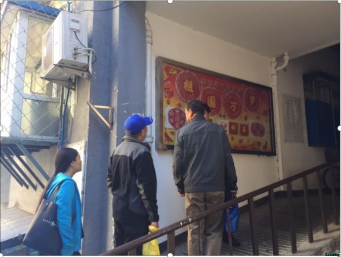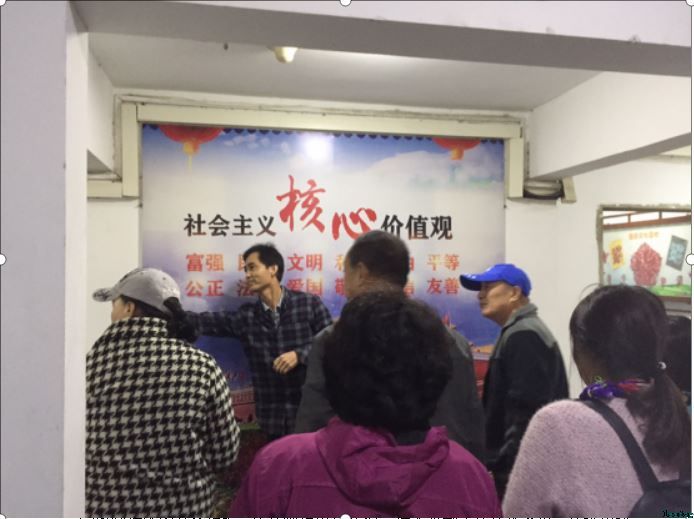 到达地方后,第六党支部的徐文立书记向大家介绍了楼道内的各种楼门文化,从手工到绘画再到党建,无一不渗透着枣南社区的文化气息。尤其是楼道橱窗内的各类党建作品,墙壁高悬的社会主义核心价值观、祖国万岁等字画剪纸,可以说是枣南社区文化建设中的代表。康静里社区居民与徐文立书记积极互动,无论生活中的细节管理还是网络信息的管理,都让人深深感受到一名“资深”老党员的素养与坚持。
