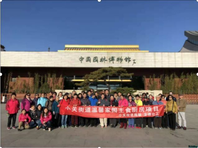 金秋的阳光温馨恬静,微风和煦轻柔,蓝天白云飘逸,是出游的好时机。小关街道主食厨房紧张的厨艺比拼暂已落幕,为缓解学员们学习的压力,增加学员和社区其他伙伴沟通交流的机会,分享中西餐学习心得,2018年10月31日上午,小关街道的60位残障朋友在立德社工带领下,一起来到中国园林博物馆进行参观游览,亲身体会中国园林的魅力,感受园林文化的博大精深。