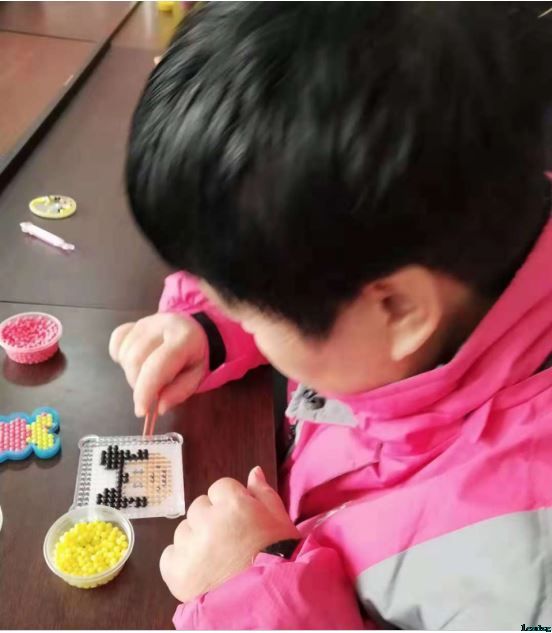 几何图形的神奇变化,色彩的巧妙运用,神奇的水务魔法珠既考验创意又考验耐心。在本次活动中,精残学员与智力学员互帮互助,精残学员在做完自己的手工后,积极主动的帮助身边的智力学员完成。