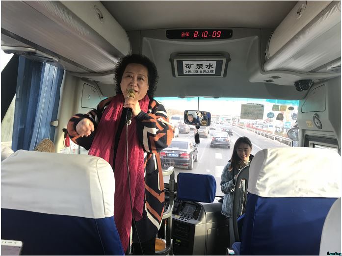 早上7:00左右,参与活动的党员同志们陆陆续续来到绿洲家园社区北门,有的去社区居委会帮忙拿活动物资,有的帮忙组织签到,还将晕车的同志们安排在前排就坐。行车途中,为活跃氛围,邀请了绿洲家园社区文化团团长李阿姨组织一台别开生面的才艺展示,在社区党委书记的带领下,党员同志们尽情“唱”、“说”、“讲”,还一起合唱《没有共产党就没有新中国》、《唱支山歌给党听》等革命歌曲,将风采展示推向高潮。每个人都兴致勃勃、热情洋溢,一路欢声笑语。
