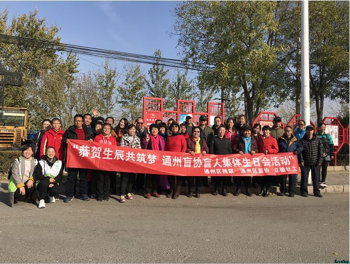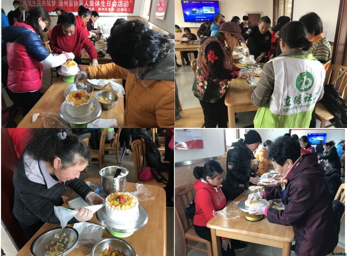 2018年11月10日,在通州区残联的支持下,由通州盲协主办、立德社工承办的“恭贺生辰共筑梦”通州盲协盲人集体生日会活动,在西集镇温馨家园餐厅内举行。