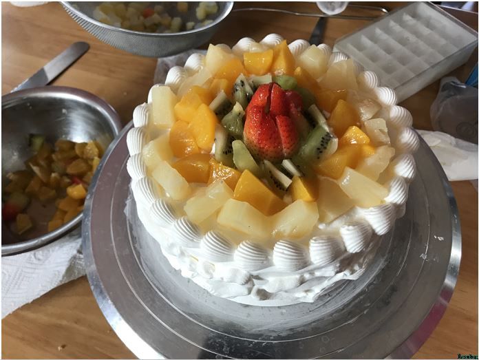 老师讲解结束后,大家纷纷动起手来,开始制作。在社工和老师的提示和帮助下,一个个蛋糕逐渐地被制作出来。大家纷纷拿起自己的手机进行拍照,一位阿姨拉着社工说:“小马,看看我这个怎么样?!”语气中满是掩饰不住的小骄傲。社工给了一个大大的赞:真的好厉害!