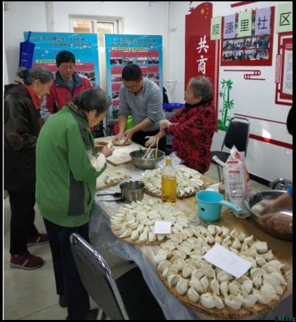 2018年11月22日上午,顺源里社区居委会和立德社工在牛王庙南院小区活动室,举办了一次社区饺子宴。上午9:30,牛王庙保健操队的队长邵阿姨一声令下“今天咱们活动早结束20分钟,一会我要去活动室和老邻居们一起包饺子!”