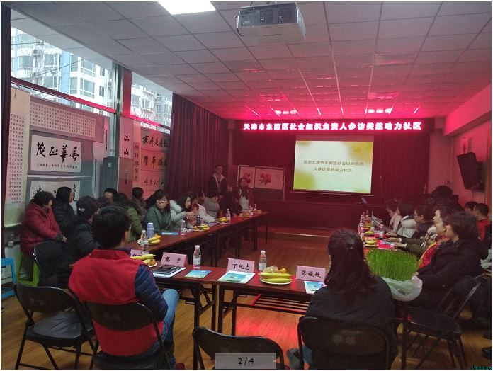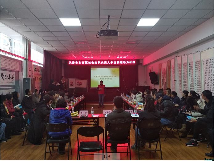 为推动社区社会组织的发展,提升社区社会组织负责人的能力,12月20日在天津市东丽区民政局的带领下,一行40余人前往北京市朝阳区三间房地区美然动力社区进行参访。活动旨在以美然动力社区社会组织发展历程为基准,相互借鉴社区发展中好的经验,以便更好地服务于社区。参与本次活动的主要领导有天津市东丽区民政局局长丁纯志,东丽区民政局社团办科长张媛媛,美然动力社区党委副书记苗俊红以及居委会主任蔡宇。