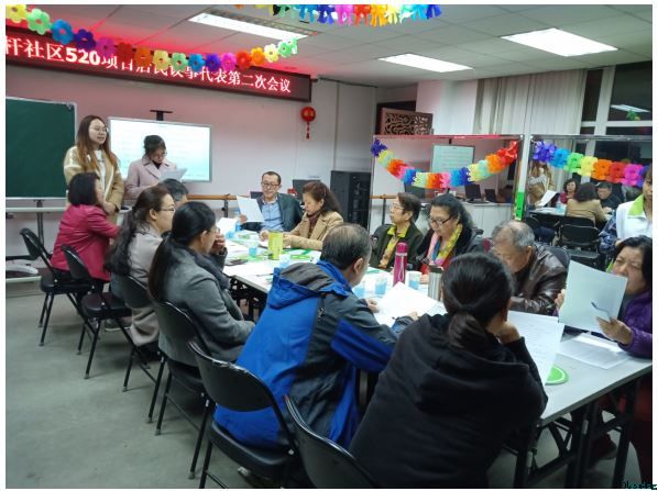 “楼门微自治,文化建家园”项目自2018年11月份启动以来,通过前期入户、宣传,推荐产生60名议事代表候选人,进而选出17名议事代表。3月18日晚7:30,在竹杆社区会议室召开第二次社区居民议事会,主要目的是选出5名议事代表组成“520”自治管理小组。