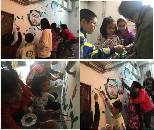 4月25日,2号楼一单元聚集了一群居民,有2号楼各楼门的楼门长,也有社区其他居民。大家一起积极投入到现场安装展板、彩绘涂色中来。现场还有一群“小小楼道美化师”,拿起手中的五颜六色的涂料,在家长的陪同下,用心涂抹着绿树、花草,帮忙将展板上墙,一幅幅美丽的画面跃然墙上。 不一会儿功夫,从楼门处到二层拐角处,打造出一幅幅温馨、靓丽、文明的风景线。