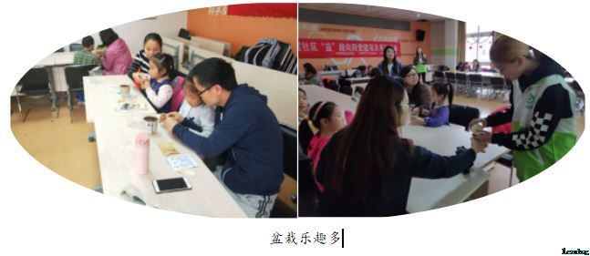 盆栽DIY活动环节无疑是最受欢迎的,小朋友们告诉社工“种盆栽太有意思啦”、“好希望它快点长出来呀”,家长们也积极的与孩子们共同动手操作,体验劳动的快乐。