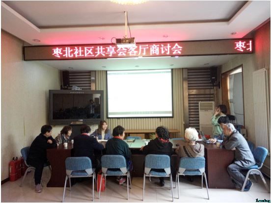 4月12日,我们在枣营北里社区居委会进行了会客厅布置的第二次研讨会,对之前的不足进行了修改;就会客厅的管理、维护进行讨论,确定了管理小组和监督小组,由居民自用自管。