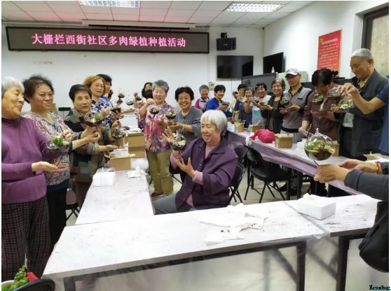 为了更好的加强党组织与居民群众的联系,提高西街社区居民参与社区事务的积极性,5月9日上午,大栅栏西街社区联合立德社工在西街社区活动室举办了绿植工艺活动。通过多肉植物的盆景制作,不仅可以提高居民的动手参与能力,还能加强邻里之间的沟通交流,更好的促进社区融合。