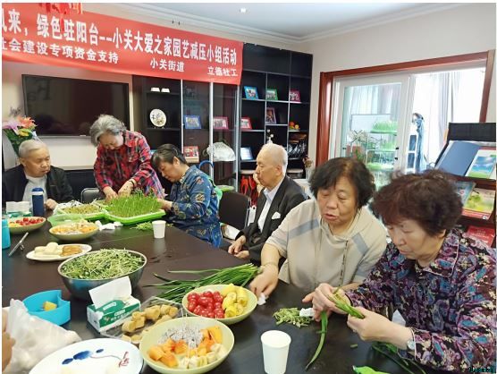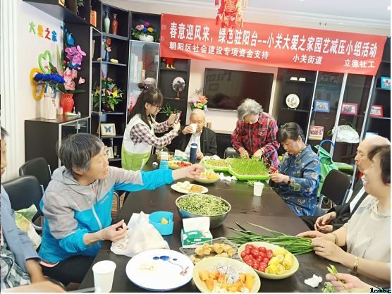 5月8日上午9:30在大爱之家活动室迎来了小组活动的第三节,主题是“绿色共赏,美食共享”,是在上次大家一起种植芽苗菜的基础上,一起品尝自己的劳动成果,一起感受收获的乐趣!