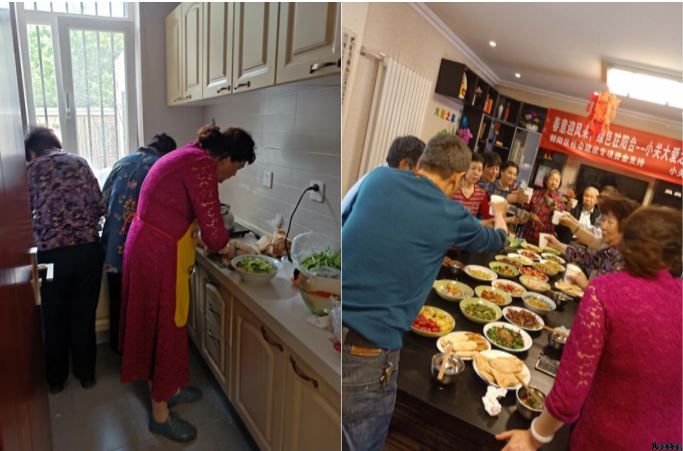大家一边干活一边聊天,欢声笑语,其乐融融,不一会儿,一盘盘色香味俱全的菜上桌了。“真好看!这个凉菜拼盘是谁做的,真好看!跟花似的,一会儿都不舍得吃了!”银阿姨称赞道。