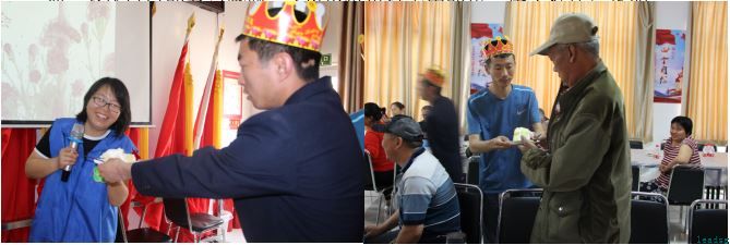 第二项生日会正式开始。社工将之前学员们写好的感谢卡分发到学员手中,由他们亲手递给家属;然后请三位寿星站到台前,由热心公益并长期陪伴大家的好大妈为“寿星”佩戴生日皇冠,并为大家分蛋糕。大家都第一时间将手中的第一块蛋糕送给家属,表达自己的爱与感恩;学员小付真诚地为家园园长送上一块蛋糕,没有太多话语,满满的感谢!