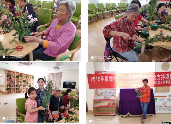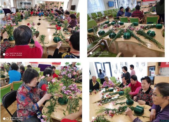 5月10日下午,在寸草春晖养老院大厅,立德社工、南湖西里社区居委会联合寸草春晖养老院举办“浓浓母爱,感恩常在”母亲节插花活动。来自社区志愿者队伍、社区居民以及养老院的叔叔阿姨共计30余人参加了此次活动。