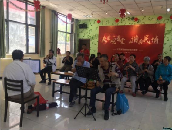 5月12日,伴着葫芦丝悠扬的旋律,立德社工步入到了观音堂活动室。本次活动是在王四营地区联合会的支持下,依靠社区社会组织服务平台,邀请了专业葫芦丝老师、二胡老师等专业人士,给居民乐器演奏进行指导。这次活动有15名“快乐阳光葫芦丝”的队员参加,还吸引了3名居民进行旁听。