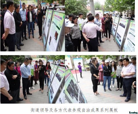 接着,在社区居干、物业代表、居民代表及社会单位代表、立德社工的陪同下,街道领导参观了活动的现场展板。展板主要有楼院自治篇、社会单位共建篇、社区志愿者篇、社区微梦想篇、环境整治篇等,居民们也围绕在展板前驻足浏览,纷纷惊叹社区变化之大,喜悦之情溢于言表。在展板前,胡建东书记对社区及立德社工现阶段的社区治理工作进行了充分肯定,同时表示要进一步扩大社区居民自治队伍的规模,充分调动社会单位的力量,实现社区治理的多元主体参与,推动南湖西里社区环境的整体提升。