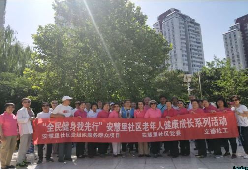 “一二三四、二二三四…”清晨,整齐的健身操口号声从安慧里社区葫芦岛广场传来,循声望去、只见大家容光焕发,分别身着红、白色两服饰,整齐的做着广播体操。原来,这是安慧里社区党委联合立德社工开展的老年人健康成长系列活动之老年人健身操活动。社区工作者、党员、居民骨干、楼门长、立德社工共计60余人参加活动。在这之前,社区还开展了老年人手指操、老年人快步走,加上健身操一共是三次,累积参加180人次。