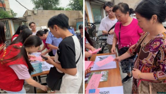 活动分为五个关卡,第一关是宣传区和二维码扫描区,居民先领一个过关卡,扫描二维码进入居民群,之后去相应的区域参加下一关趣味运动。