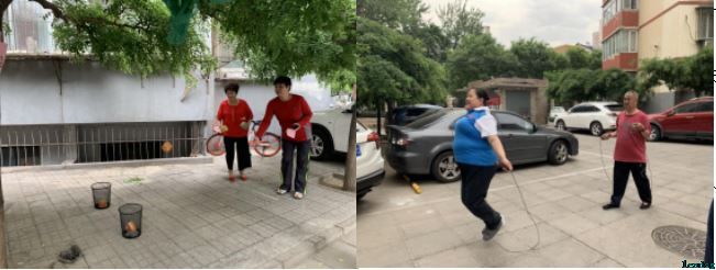 第四关是“趣味投沙包”和“趣味跳绳”,年龄较大的居民可以选择沙包和跳绳。