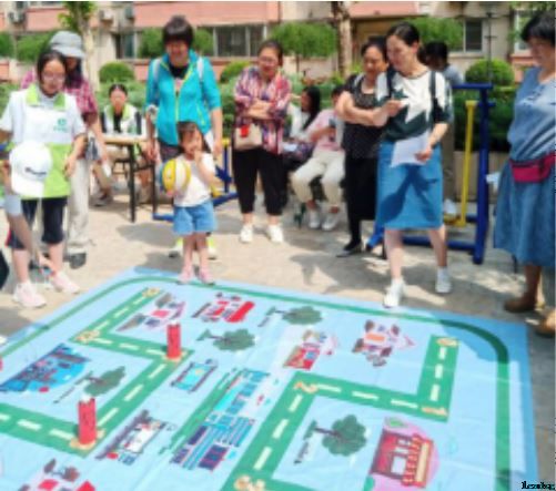 看惯了桌台上的飞行棋,铺在地面的飞行棋成为“新宠”。居民们争先恐后参与“绿色出行我看行”的游戏,4人一组,印有不同出行方式的骰子在居民手中翻滚,一步、二步、三步……叔叔阿姨们议论纷纷,“今年北京的天气比往年好了不少,前段时间治理柳絮问题也做了不少事情呢!咱们平时也得注意保护环境呀!”