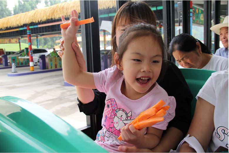 来到了投喂区,孩子们手里的胡萝卜吸引了想要吃食的动物们,它们模仿人的举动逗得孩子们哈哈大笑。也许与小动物亲近的时候,孩子们的心是敞开的。