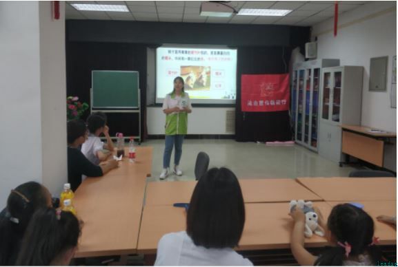 在互动游戏“心有千千结”之后,社工小张利用ppt带领家长和小朋友们一起重温端午的来历、习俗、文化以及佩戴香囊的一些讲究。
