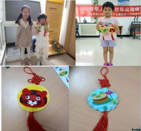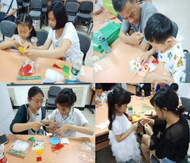刚开始还是社工在指导小朋友们,不一会儿家长们就掌握了制作香包的要领,一个个变身“专业手工老师”,一对一辅导孩子进行手工制作。在家长的指导下,一个个活泼可爱的香包出现在眼前。