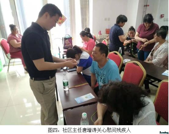 京旺家园一社区主任唐增涛也参与到活动中来,送去政府对残疾人的关心;活动结束之后为残疾人分发粽子,表达节日的祝福。一位服务对象说:“感谢你们对我们残疾人的关心和关爱,每时每刻都想着我们。”
