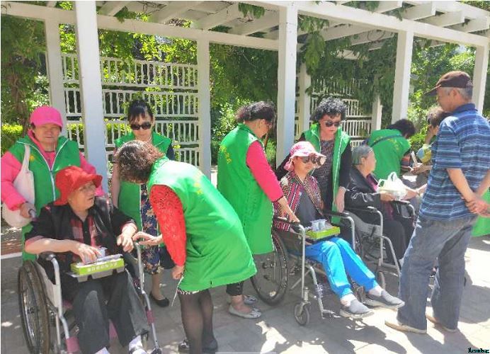 赏景环节,志愿者事先分好组,小心地推着着老人们逛公园,赏花,聊着家常。随后,社区为老人及家属精心准备了营养午餐。老人及家属表示:社区的“一日女儿”活动真的是越来越贴心,越来越细心。赏景活动不仅让老人能在户外转转,也让陪护家属有了些许放松和休息的时间。