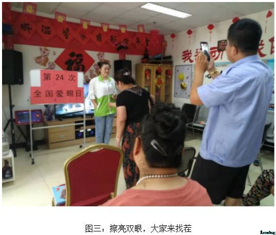 歌声仍在回荡,爱眼主题环节隆重登场。跟着社工,载着回忆,伴着眼保健操的音乐,大家认认真真地坐着眼保健操。别说,还真像是回到了当初的课堂!短短的四节眼部按摩过后,残疾人朋友纷纷表示眼部的肌肉舒缓了好多。