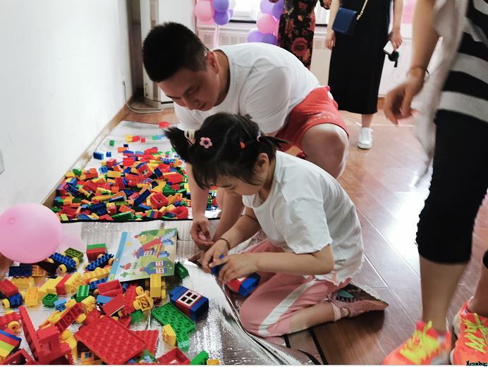 <五>:乐高拼接 家长和孩子共同拼装指定乐高图案,家长找乐高零件,孩子拼装。