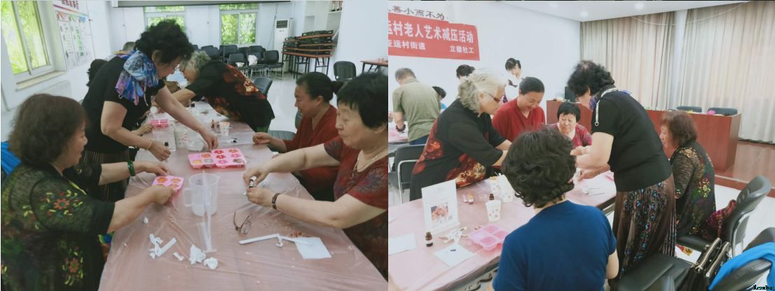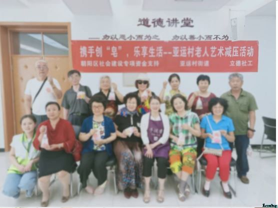 为了丰富亚运村失独老人的生活,引导老人在艺术创作中释放内心压力,促进老人之间沟通交流,2019年6月19日上午,亚运村街道联合立德社工为老人们开展了主题为“携手创‘皂’,乐享生活”亚运村老人艺术减压活动。