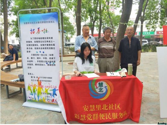 2019年6月19号下午,安慧里北社区联合立德社工在安慧里全民健身园开展了彩慧党群便民服务队的招募活动。在居民们的积极响应下,成功招募社区理发队员一名,为志愿者服务队的壮大增砖加瓦。