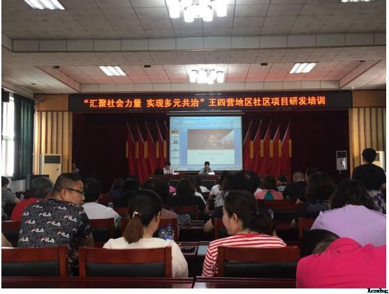 2019年6月19日上午9点,王四营地区社区办、社区社会组织联合会和北京立德智库咨询有限公司三方,在王四营乡人民政府南二楼会议室联合举办以“汇聚社会力量,实现多元共治”为主题的社区项目研发专题培训。此次培训邀请了首都经济贸易大学公益慈善研究中心副主任、中央财政购买服务项目评审专家王世强担任讲师,来自白鹿社区、观音堂社区和官悦欣园社区共40余人参加了培训。