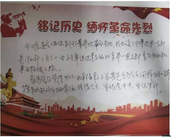 在返程的车上,大家写下了今天参观的感受,有阿姨写到:看完以后觉得我们今天的幸福来之不易,是先烈们用鲜血和生命换来的;还有叔叔写到:要牢记党员身份,同党中央保持政治思想上的高度一致,多做正能量的事,为和谐社区做贡献;最后有一位阿姨说:感谢今天党委组织的活动,平时在家很少外出,在路上看到了祖国的大好河山,参观了红色基地,收获颇多。