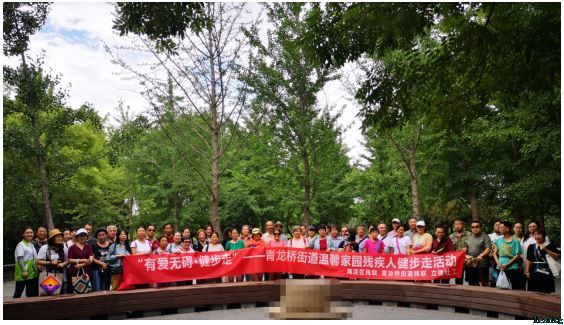 刚刚下过雨的清晨,没有了往日的炎热,玉东公园迎来了一群可爱的人,他们是来自青龙桥街道20个社区的残疾人朋友以及助残志愿者们。在青龙桥街道残联的大力支持下,温馨家园托管项目第三方——立德社工,首次顺利组织了以“有爱无碍”为主题的健步走活动。